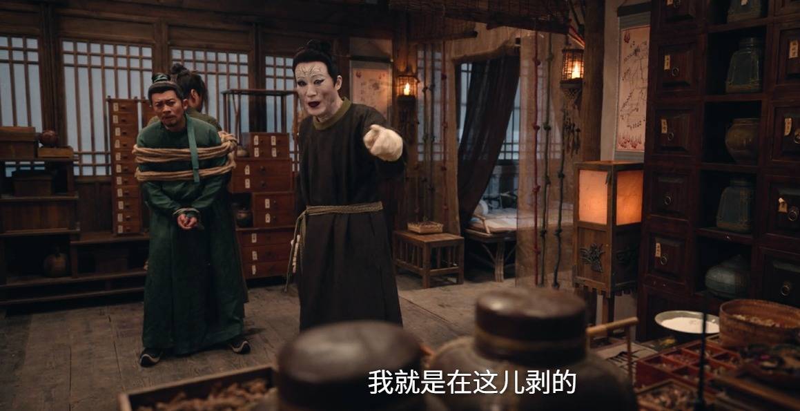 于是乎两个人水灵灵地被百变郎君绑起来了,他还要剥苏无名这个刑狱博士的脸,苏无名询问关于舞阳的事情,一边拖延一下时间,百变郎君原来也跟踪过沉空,知道舞阳像年轻的天后,便寻思用她的脸换金饼。