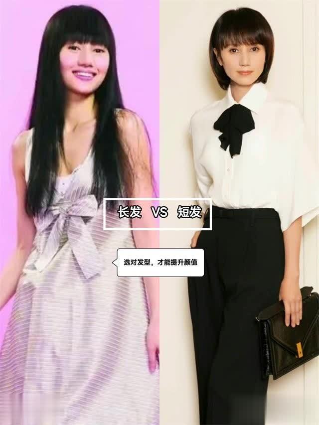 对比⑵.长发显老显脸大;短发更具气质、显脸小