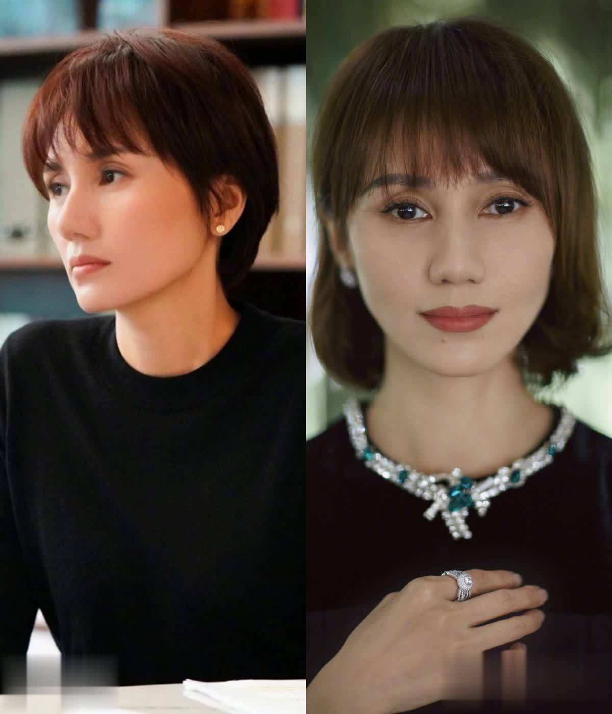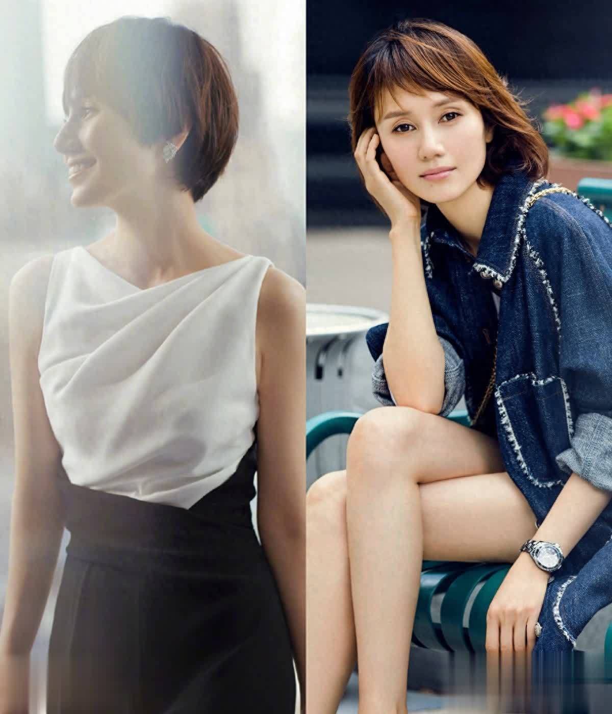 相较之下,利落的短发不仅凸显出她出众的下颌线条,还让脸部轮廓更为清晰立体,仿佛换了一个人。