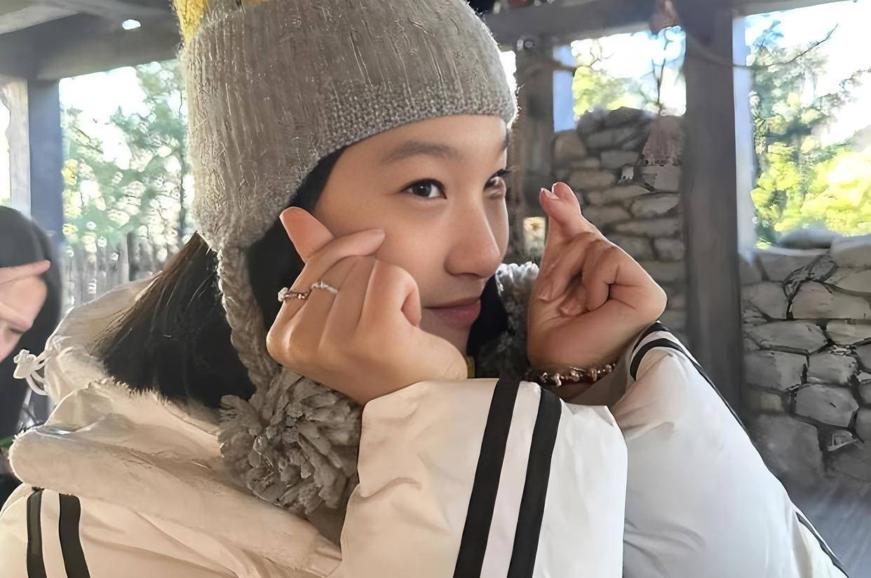 可就算只露出半张脸,也能看出哎呦喂的高颜值:鼻梁秀气,苹果肌饱满,父母的优点她一样也没落下。