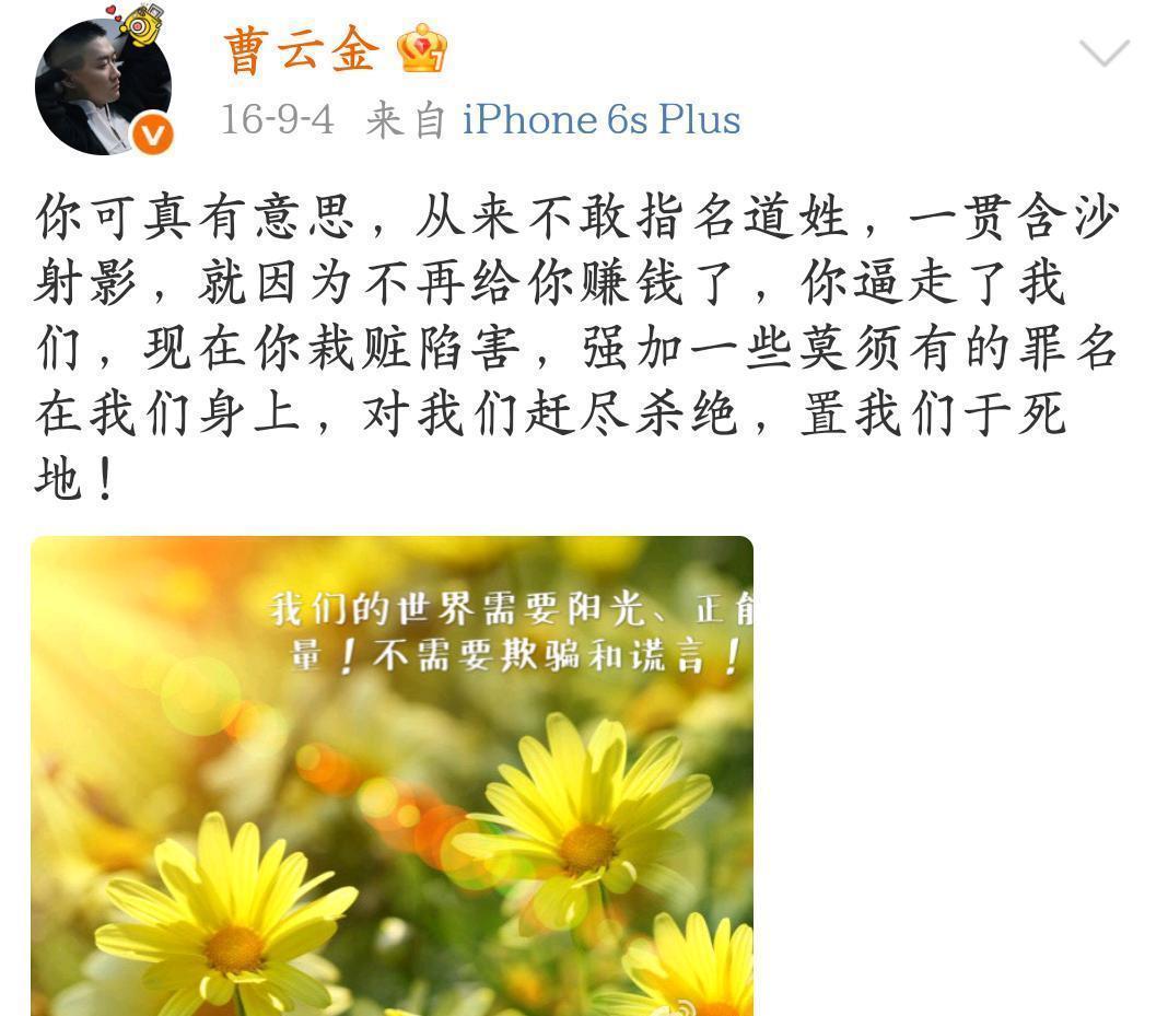 你来我往,口诛笔伐曹云金与郭德纲的恩怨,年彻底爆发。当时曹云金在社交平台上发布了一篇 6000 字长文,言辞激烈地控诉郭德纲 “不仁不义”,把多年的积怨一股脑倒了出来。