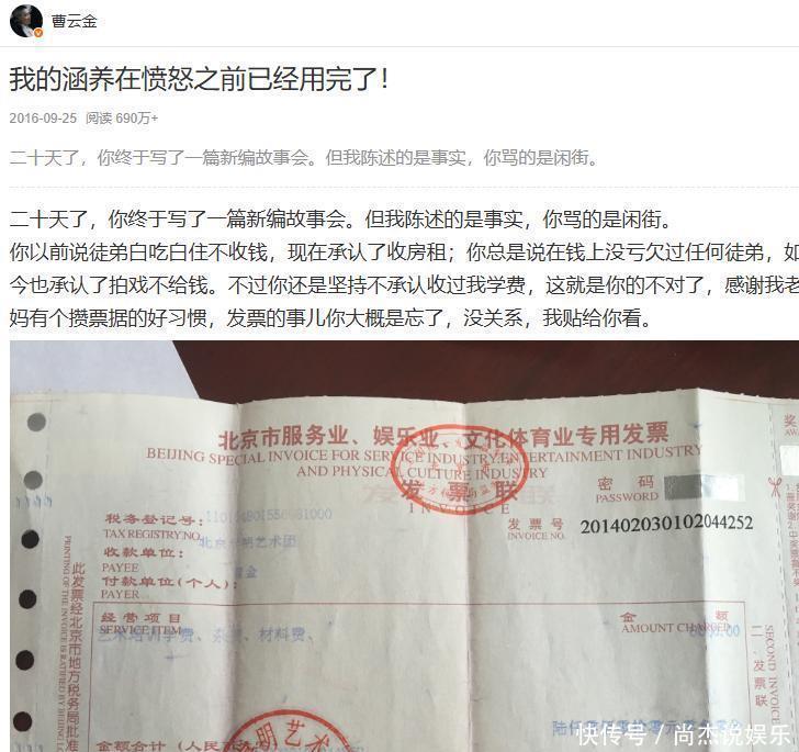 之后,网上又传出不少曹云金不尊师重道的八卦。两人提起对方,都一副老死不相往来的态度,这场师徒恩怨也就此搁置。