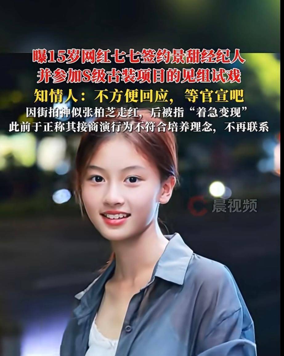 15岁的街拍少女七七最近成了内娱圈的神秘嘉宾。有人说她已经悄悄签了景甜的经纪人,正在北京封闭式学表演,甚至拿到了某S级古装剧的试镜机会。这个消息像长了翅膀似的飞遍全网,可当事人那边却始终捂着盖子——摄影师说“等官宣”,景甜团队装聋作哑,连七七妈妈都把朋友圈设置成了三天可见。