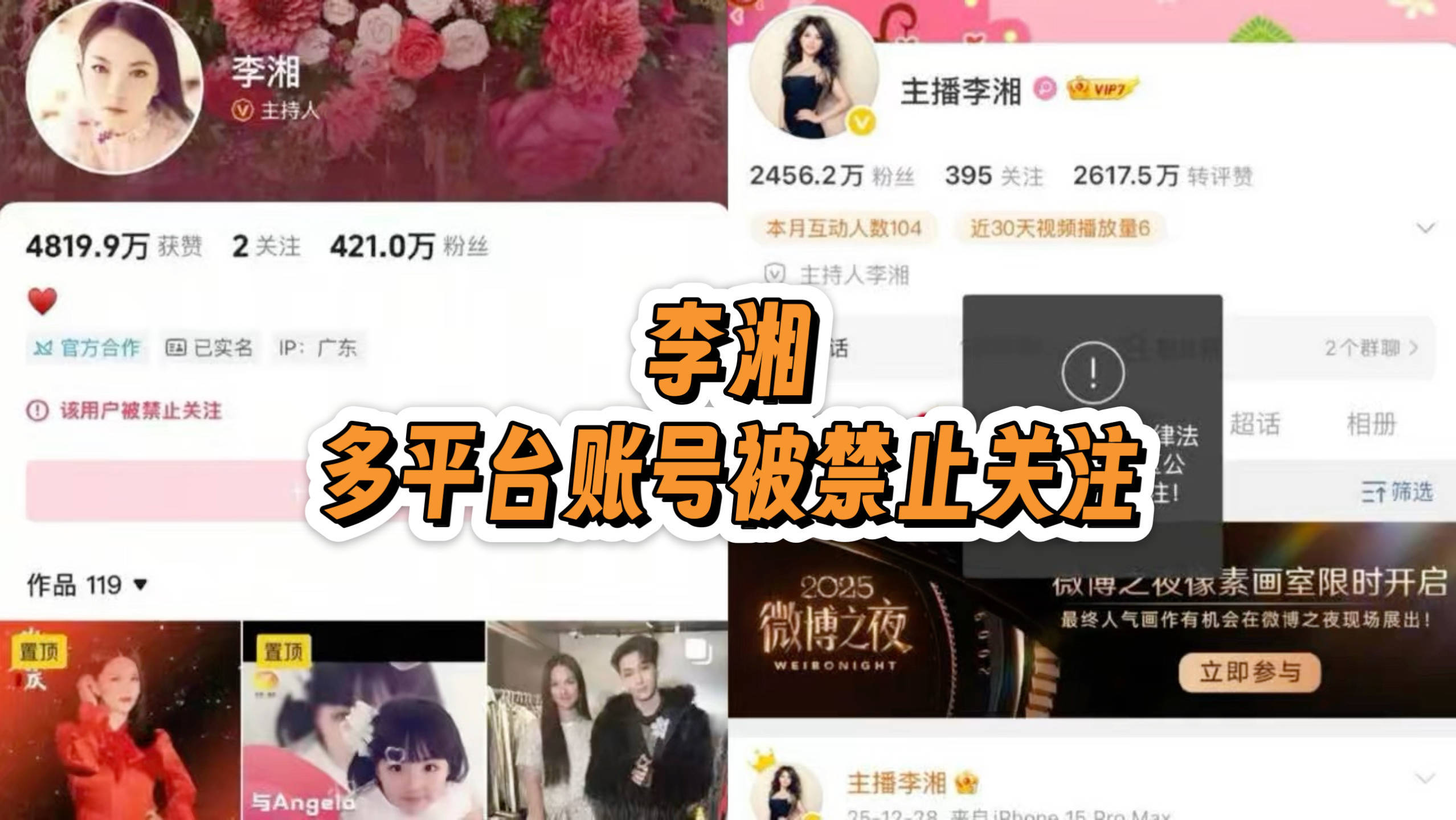 2026日,一则消息在全网炸开了锅——拥万微博粉丝、421万抖音粉丝的李湘,全平台账号突然被标记为“禁止关注”。微博提示明确指向“违反法律法规或社区公约”,抖音、小红书虽未披露细节,但同步采取限制措施,让这位曾经的湖南卫视“一姐”一夜之间从顶流跌落。