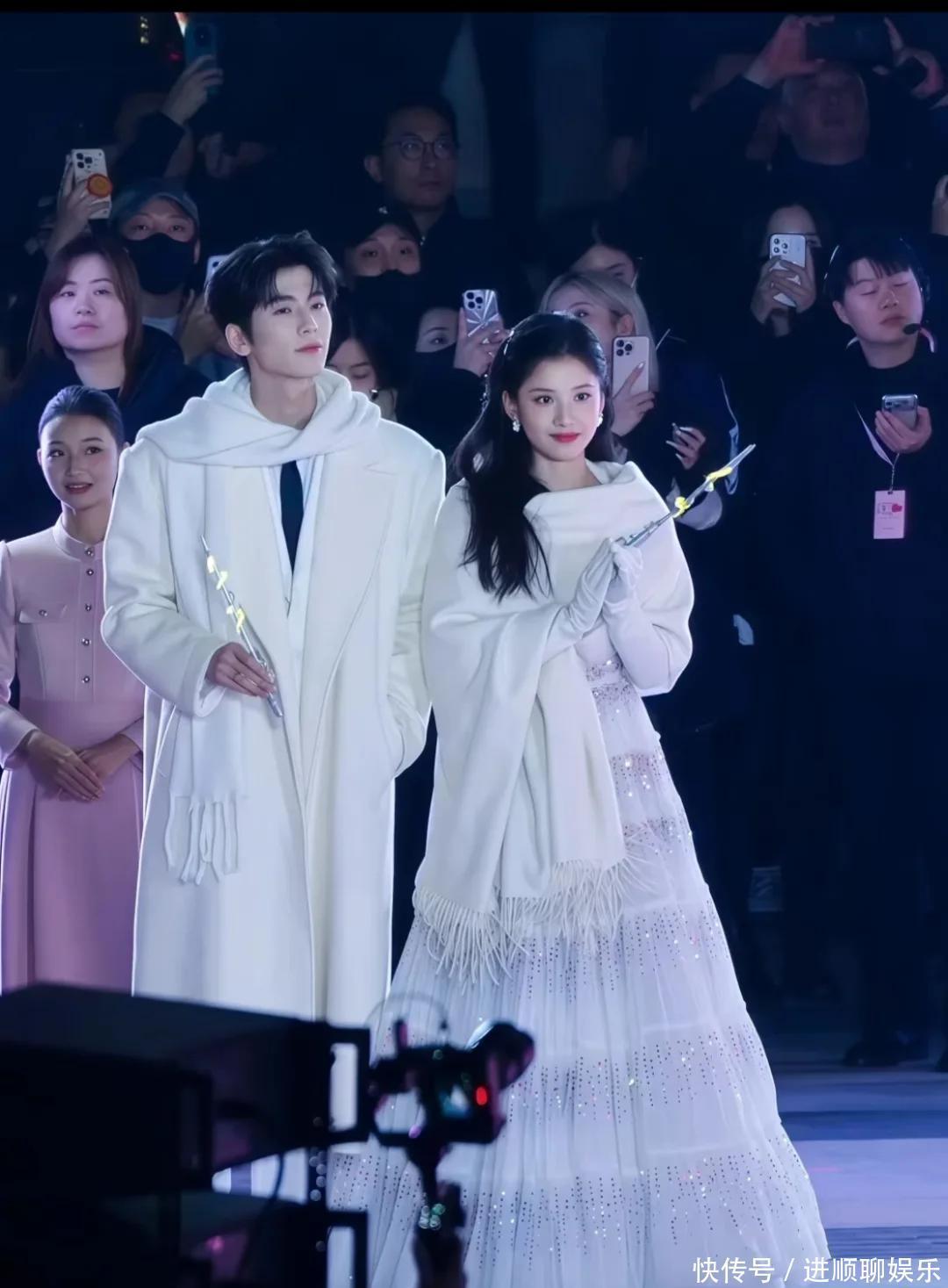 张凌赫平时给人的印象是硬帅型,演古装剧时那股子英气扑面而来,这次全白造型却柔和了不少,让人眼前一亮。张婧仪呢,一直是甜美挂的,这次公主裙加持,更显梦幻。