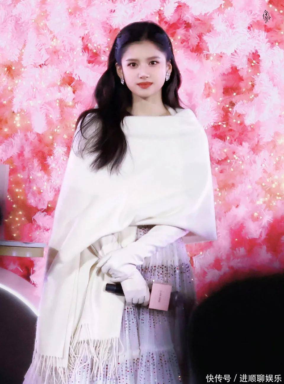 说真的,那围巾一围,风一吹,活脱脱一个从童话里走出的王子,优雅中带点硬汉气质。紧接着张婧仪出场,她选了条白色公主长裙,裙摆层层叠叠,配上白色围巾,头发微微卷曲,妆容清新自然。生图里她的皮肤白到发光,五官精致得像瓷娃娃,网友直呼“白雪公主具象化”。