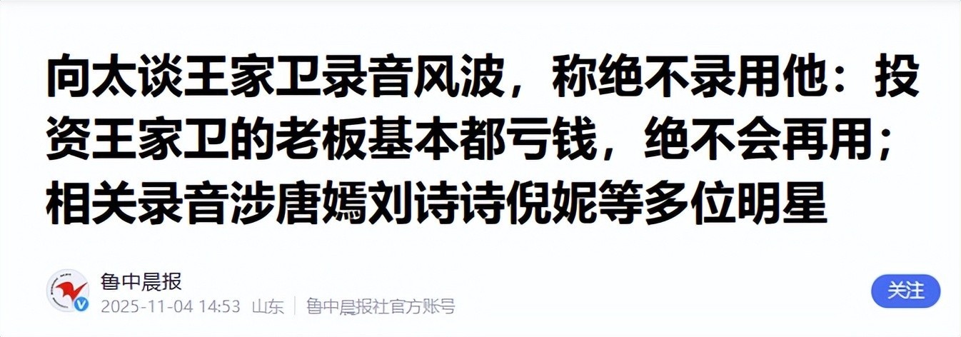 这段不美丽的过往,随着王家卫佳作不断,逐渐不再被提及,可当下,录音风波越闹越大,王家卫的黑历史又被挖出。