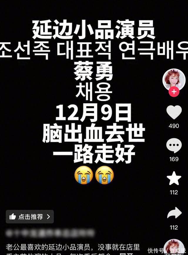 突发!曝延边知名笑星蔡勇去世,岁,曾出演韩国电影《特工》